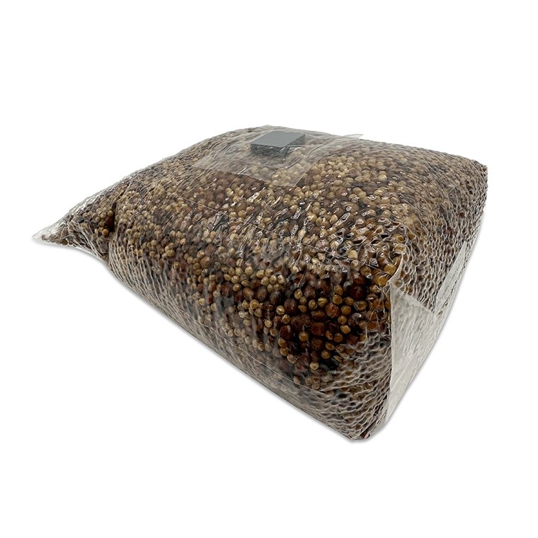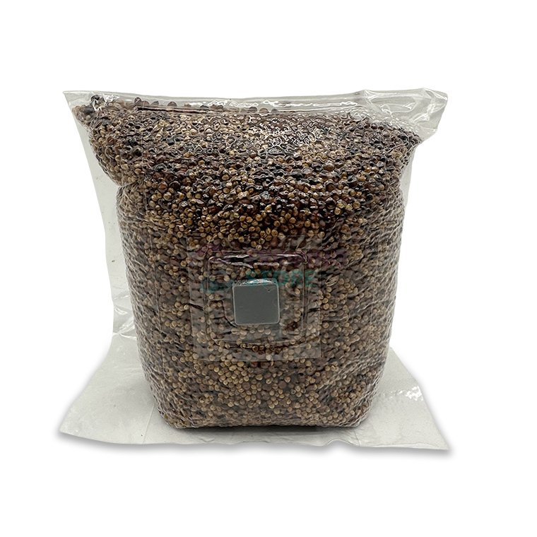 The Sterilised Millet & Milo Grain Spawn Bag is the ultimate base for rapid mycelium colonisation and contamination resistance. Our optimised millet and milo blend, sterilised under lab conditions, ensures a fast, clean start. Inject 10 ml of spores or liquid culture and watch colonisation within 2 to 3 weeks. Once fully colonised, mix with our Sterilised CVG Substrate or another bulk substrate for abundant yields.