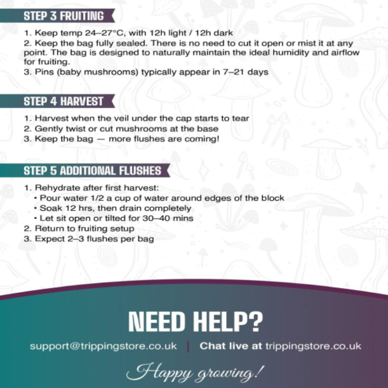 Follow this complete visual guide for using your All-in-One Dung Master Grow Bag from Tripping Store